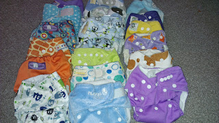 Busy evening spent sorting out the nappies for library hire kits....oh my gosh when you see it al in one place there are a lot...too any to photograph in fact. Hubby was less than impressed lol. so now we have
